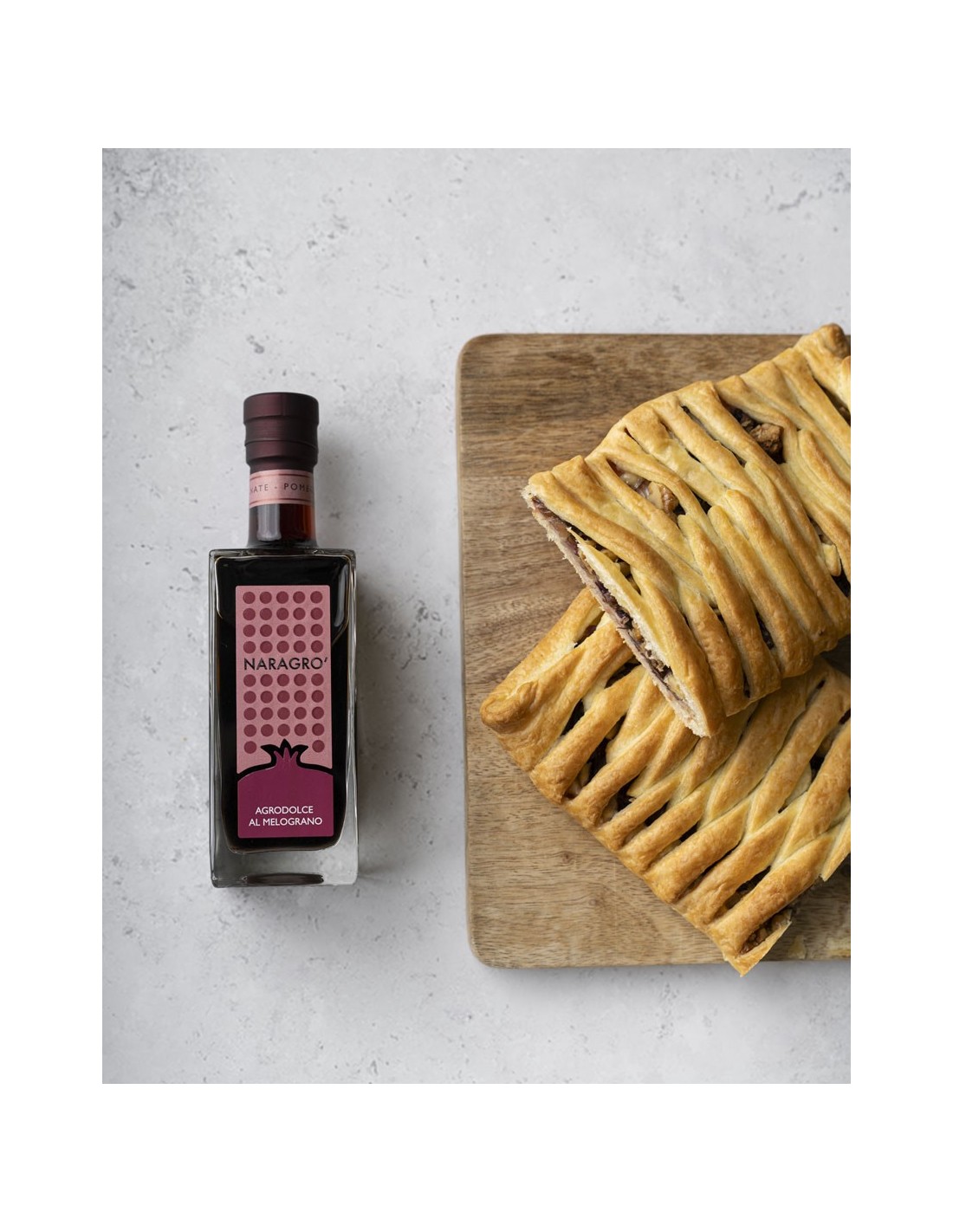 Naragrò Agrodolce al Melograno offre un sapore unico e aromatico grazie al melograno. Un condimento perfetto per insalate, carni rosse, e piatti più freschi. Confezione da 250 ml.